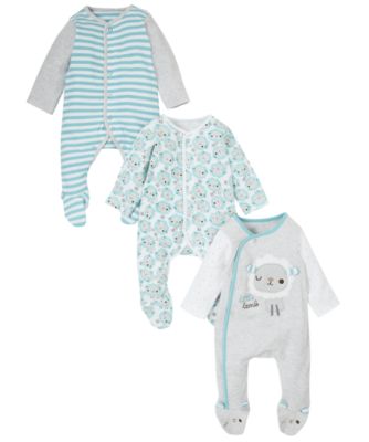 Features and benefits for Mothercare Little Lamb Sleepsuits - 3 Pack